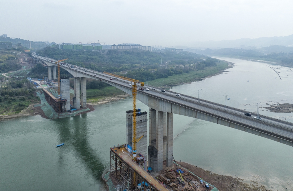 渝武高速拓宽改造工程迎新进展 马鞍石复线桥主桥墩封顶