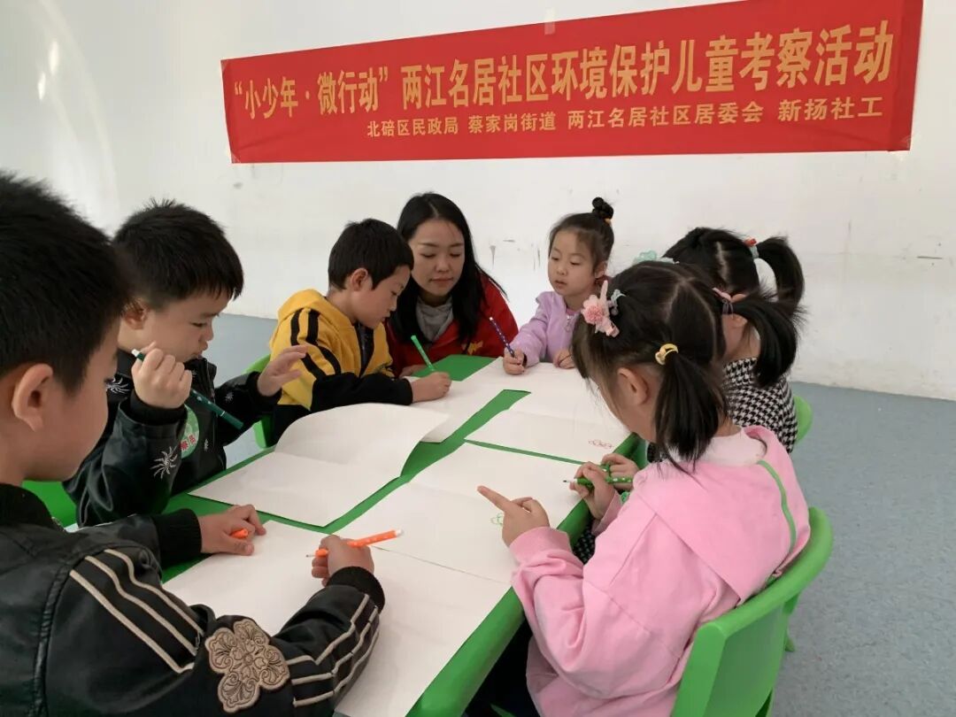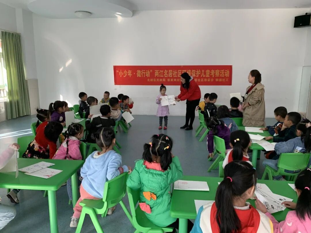 日前,蔡家岗街道两江名居新时代文明实践站联合辖区人之初幼儿园,组织34名儿童开展“小少年、微行动”社区环境保护儿童考察活动,通过水彩画、互动性趣味游戏、交流讨论社区环境建设等方式,引导儿童参与社区环境治理,提高他们的环境保护意识。